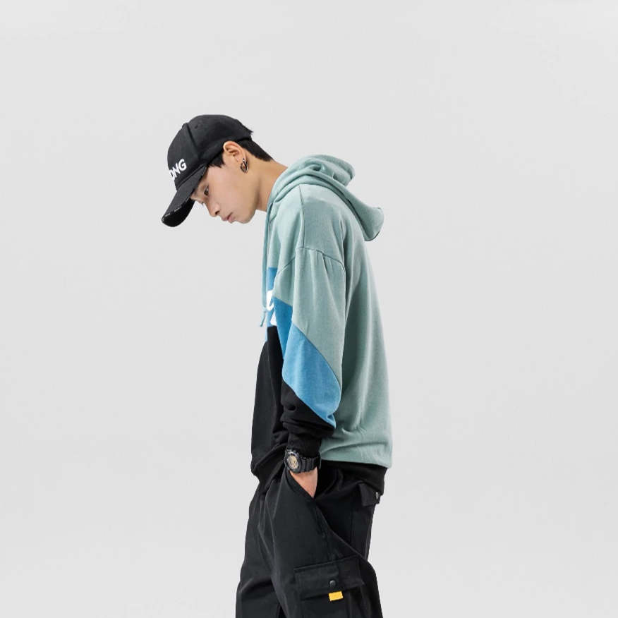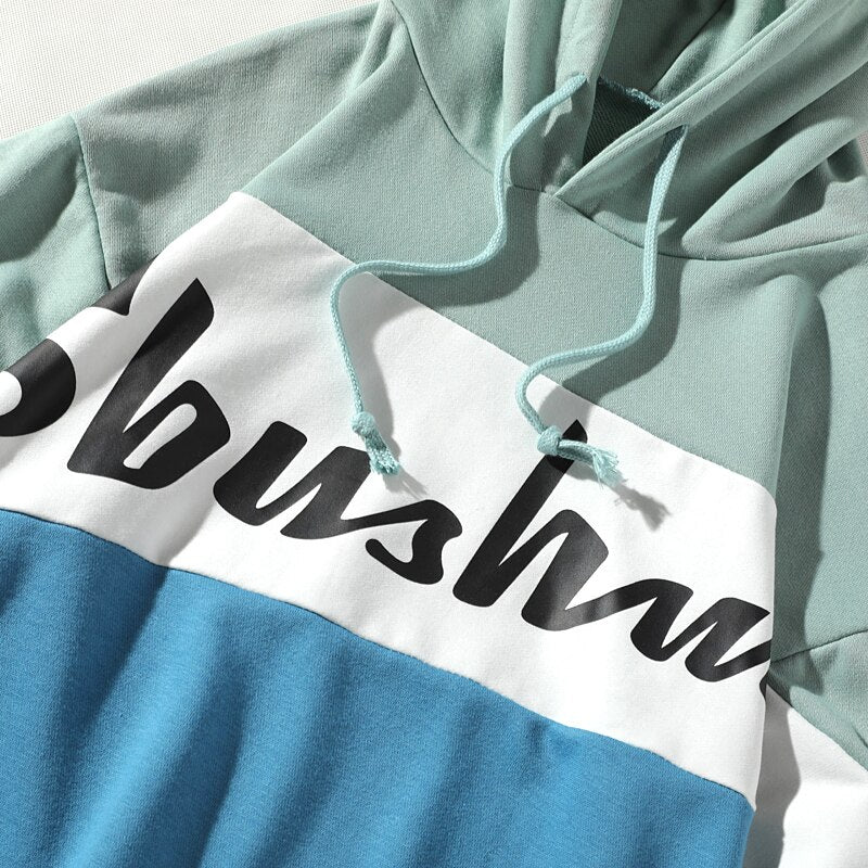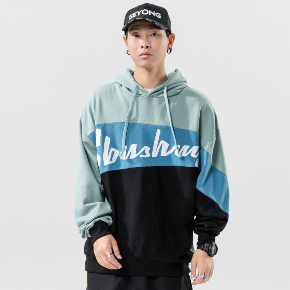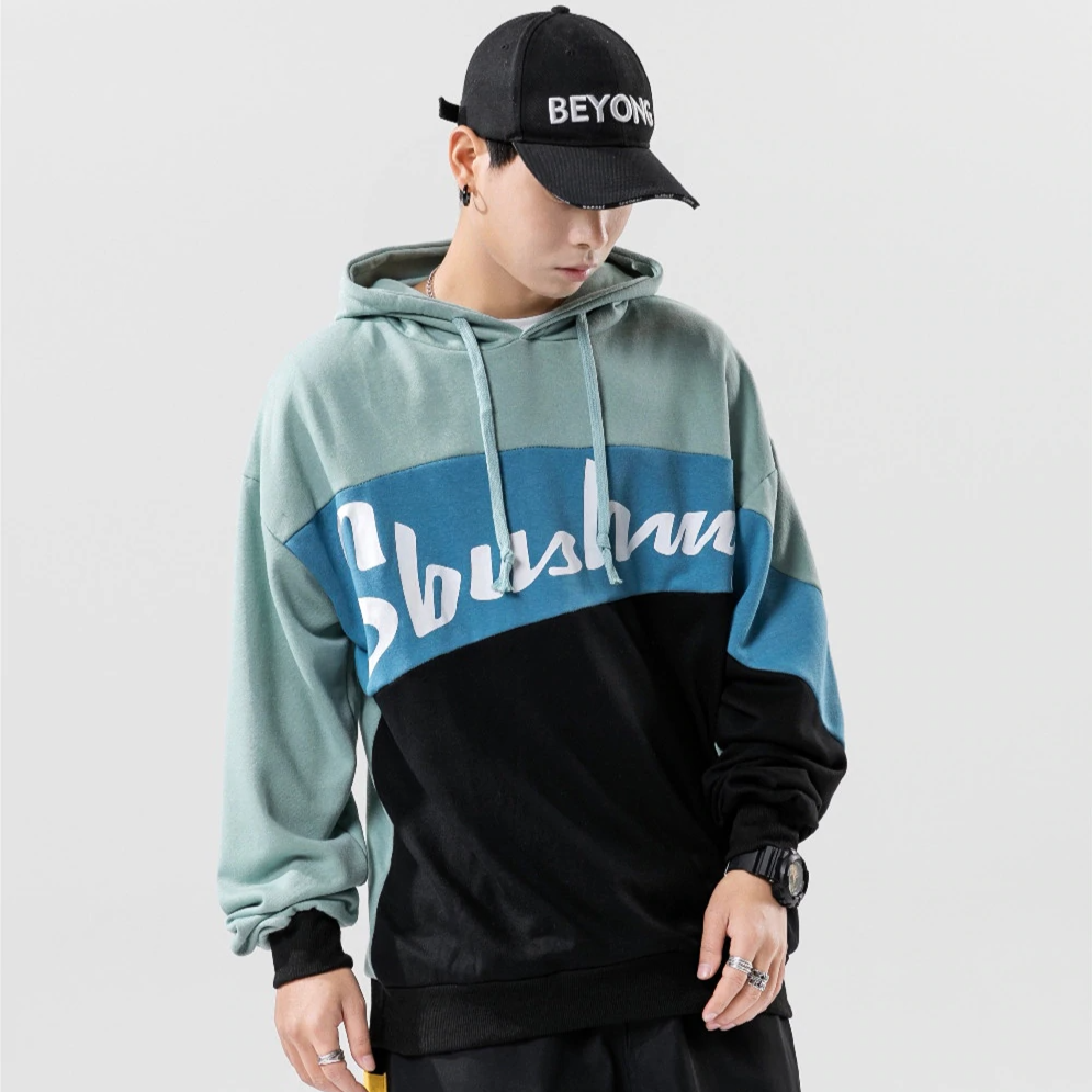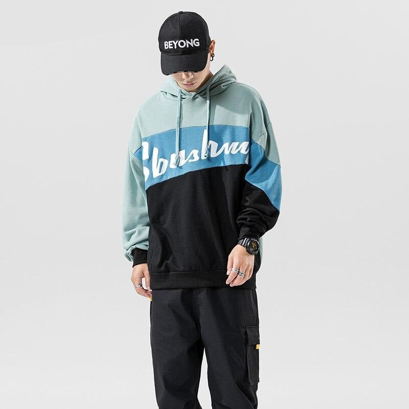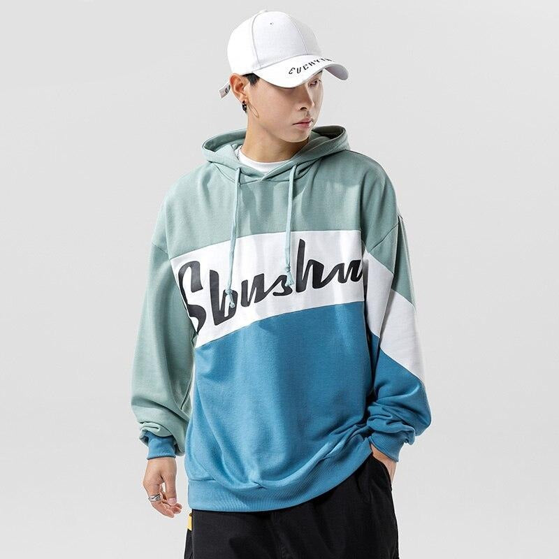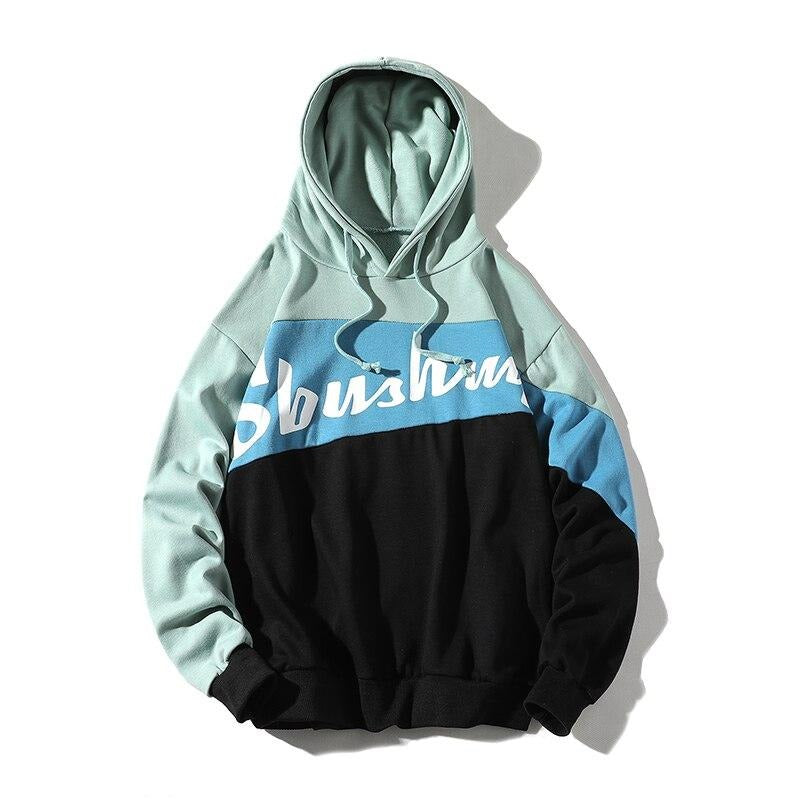 -Sweat-shirt Hoodie à capuche Bleu Vert Blanc imprimé Streetwear