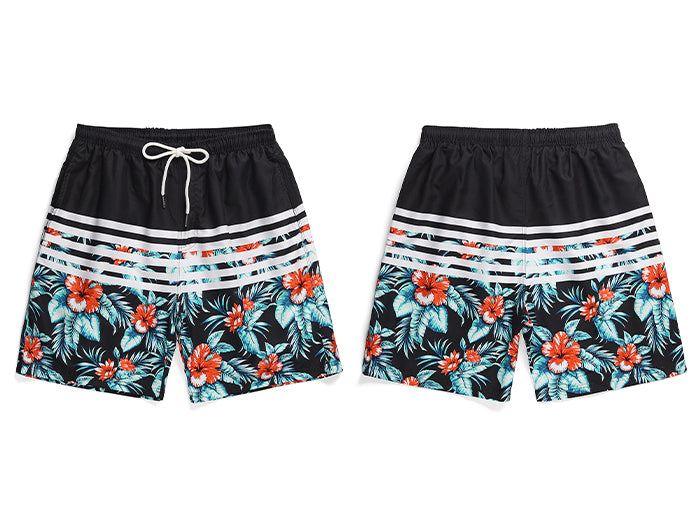 -Short de bain, Plage Streetwear motif fleurs fleuris