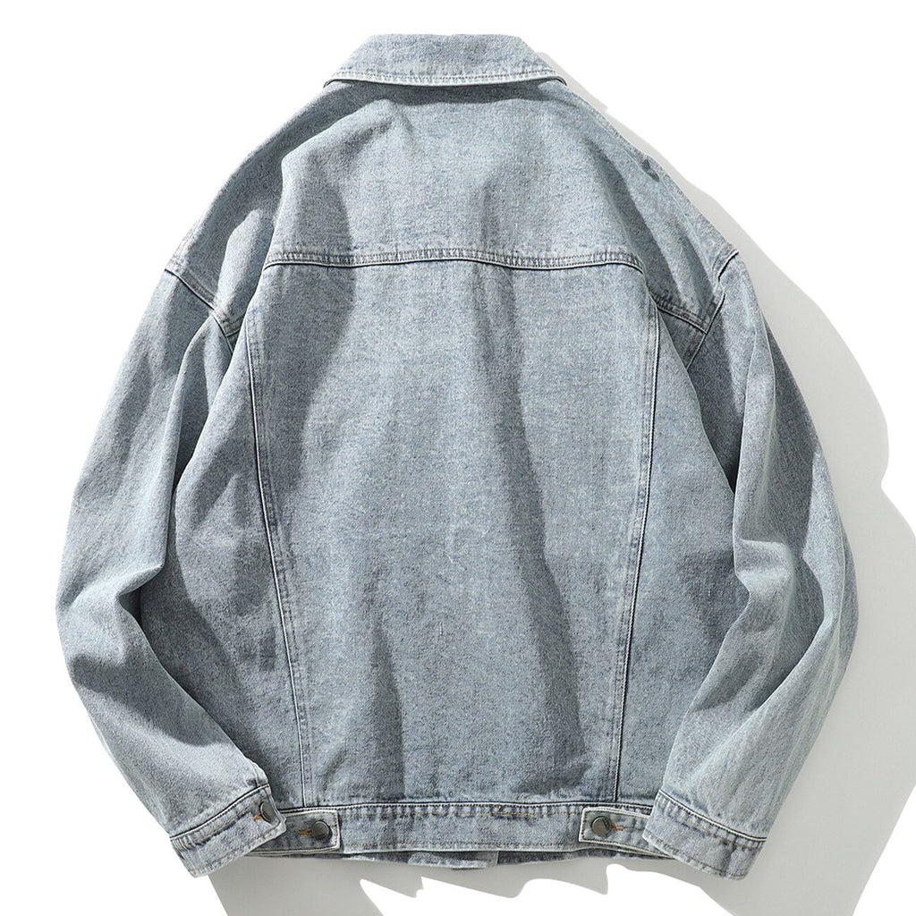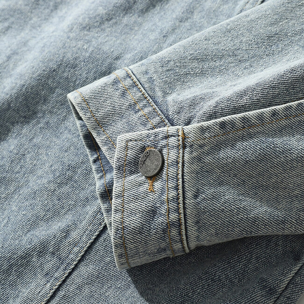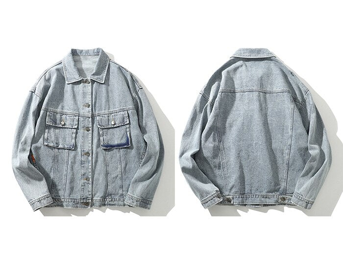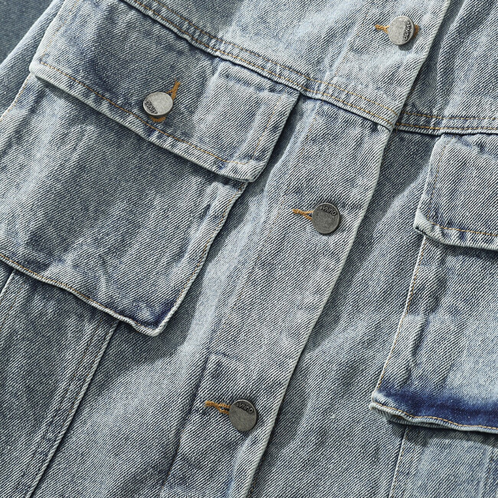 -Blouson Veste en jean denim Gris Clair travaillé streetwear