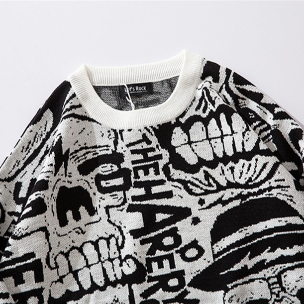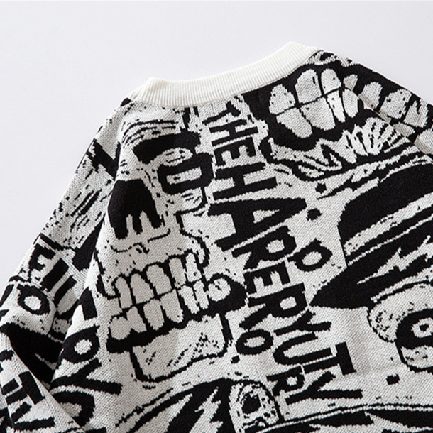 -Sweat-shirt Crewneck Blanc Noir Hoodie Pull Tricoté Streetwear