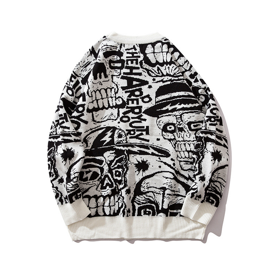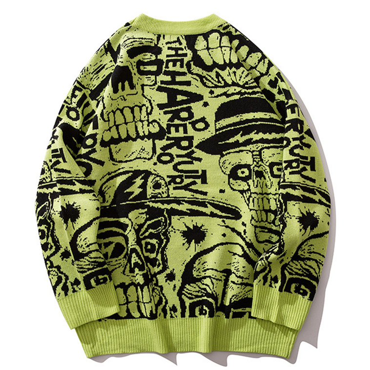 "SKULL" Crewneck Pull Orange tricoté - URB1™