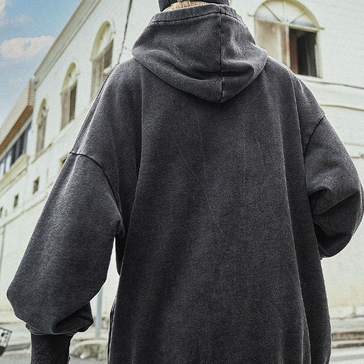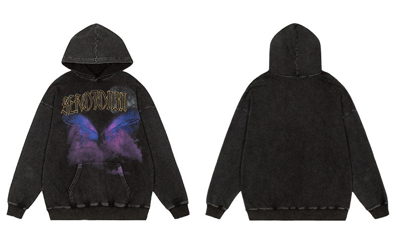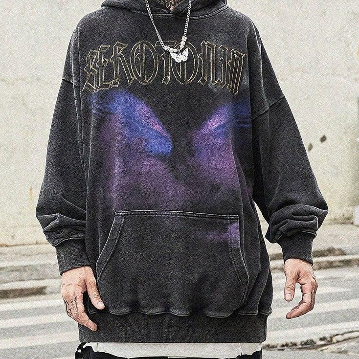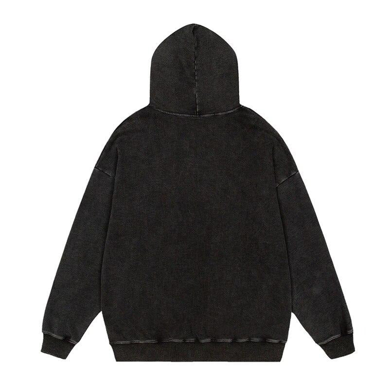 "SRTO" Sweat-shirt hoodie à capuche noir délavé imprimé - URB1™