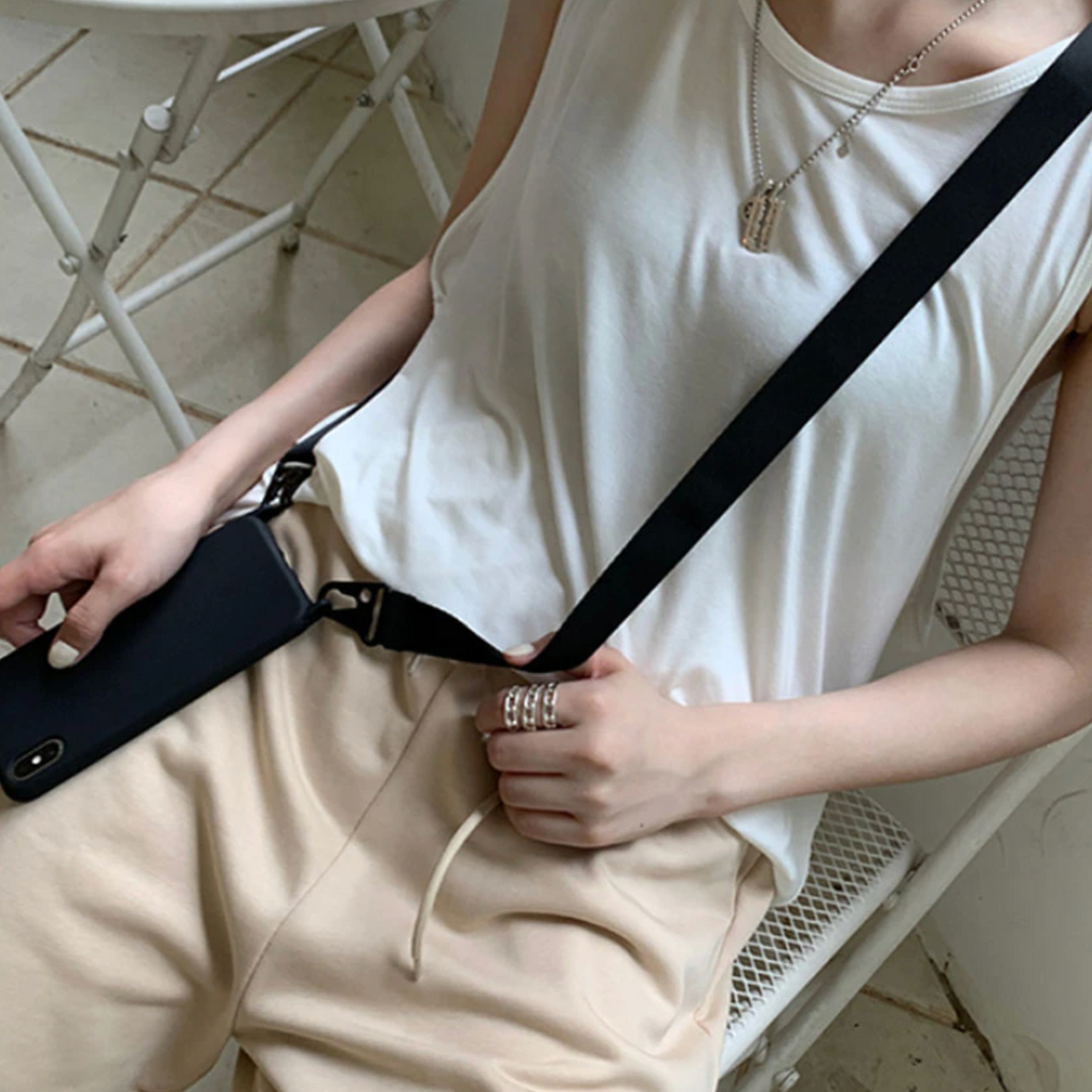 -Coque Silicone iPhone avec Cordon Bandoulière Collier.