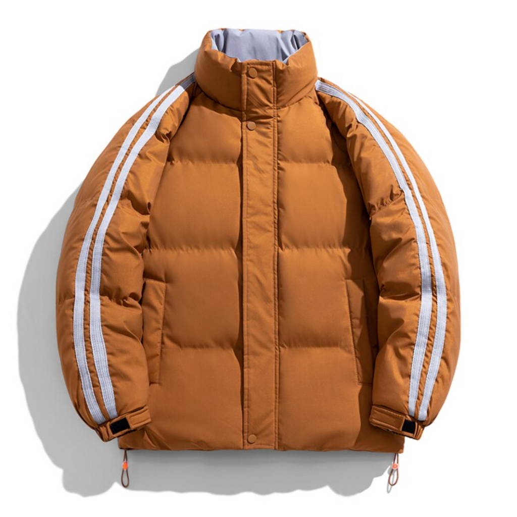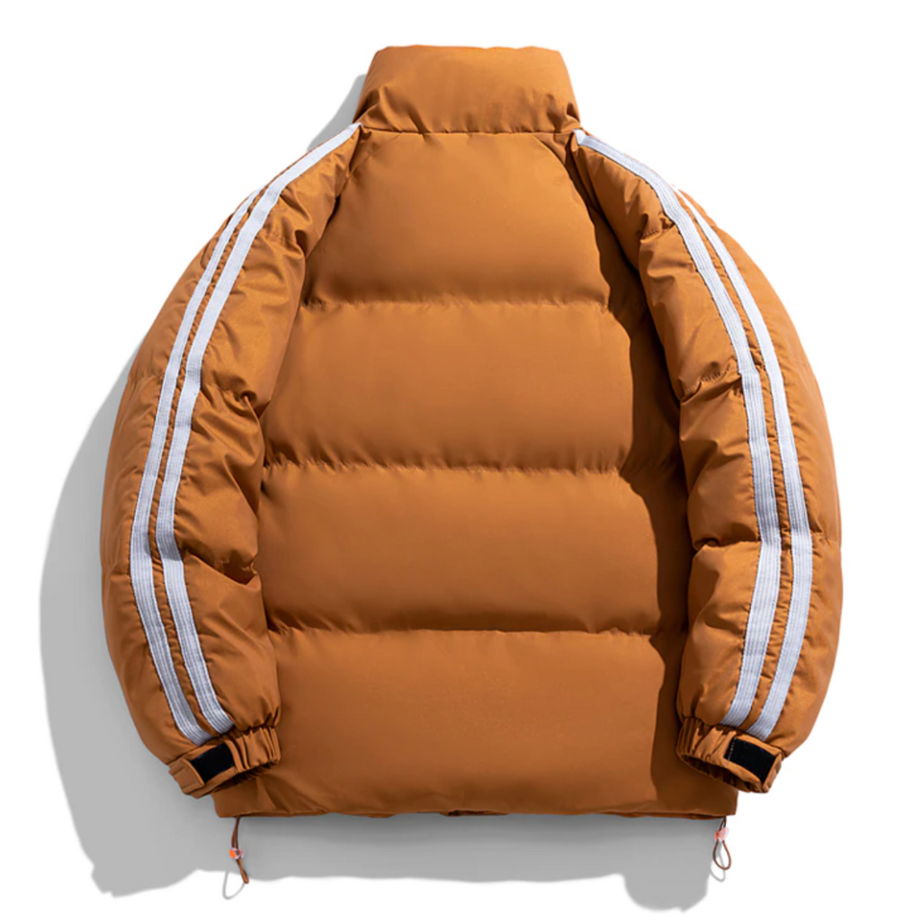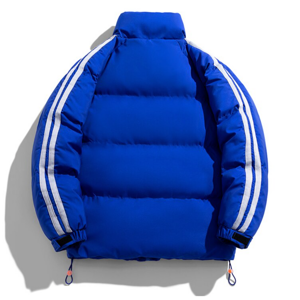 -Parka Doudoune Matelassée Blanche à bandes Grises Streetwear
