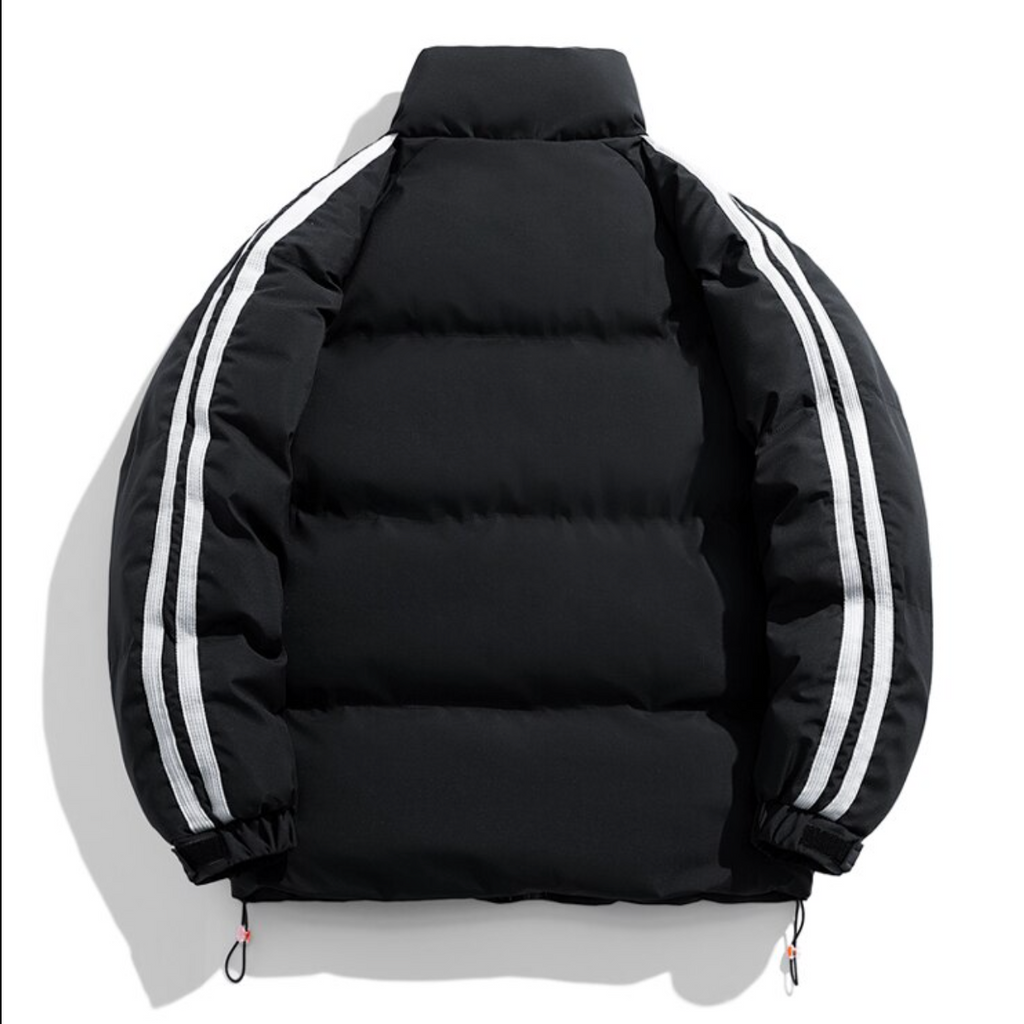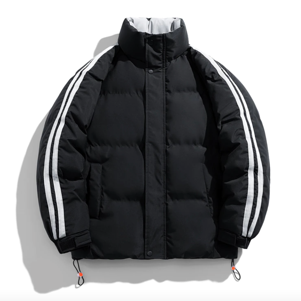 -Parka Doudoune Matelassée Bleu à bandes Grises Streetwear
