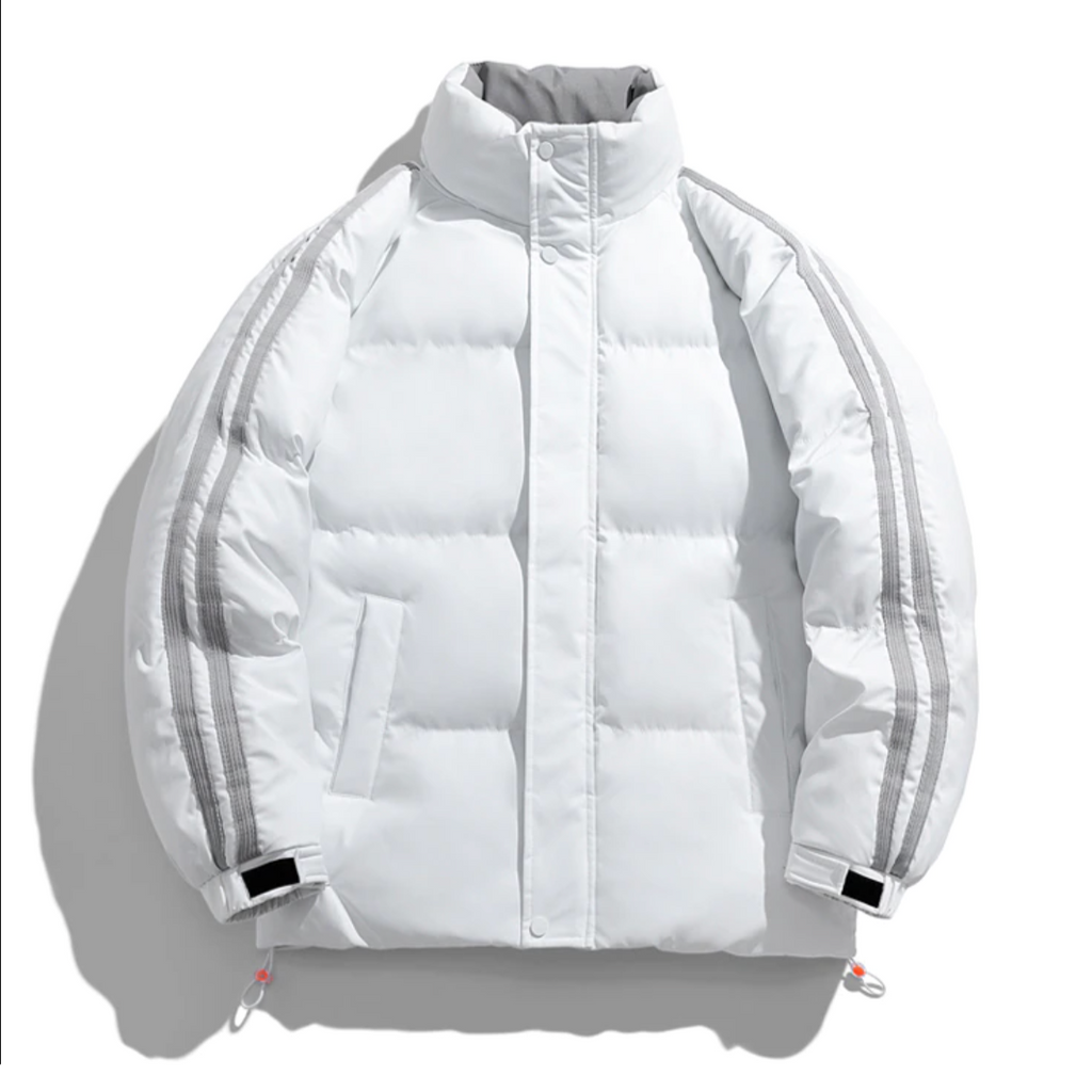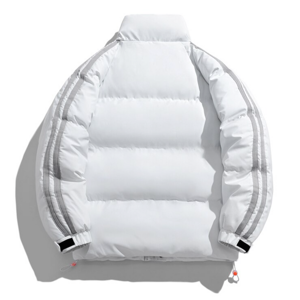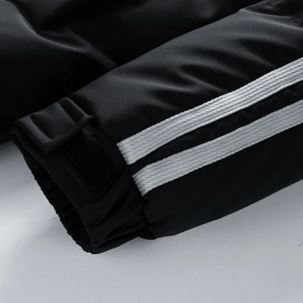 -Parka Doudoune Matelassée Noir à bandes Blanches Streetwear