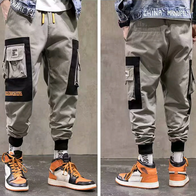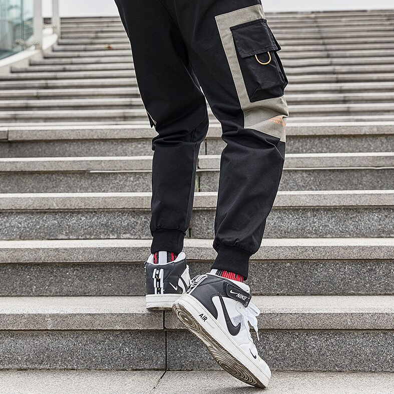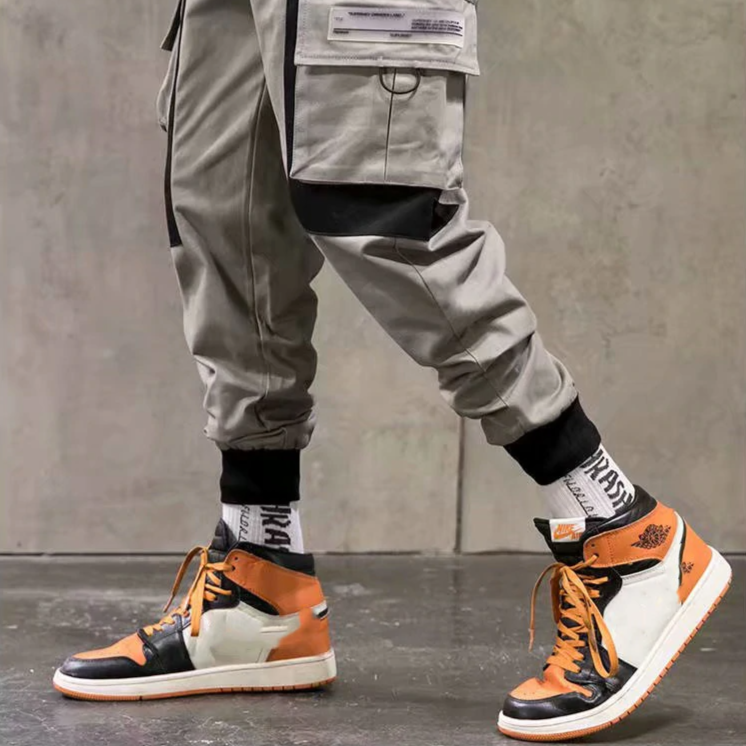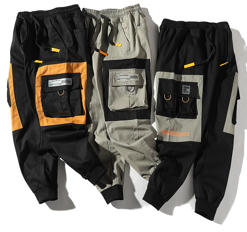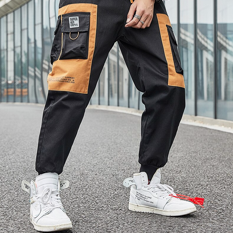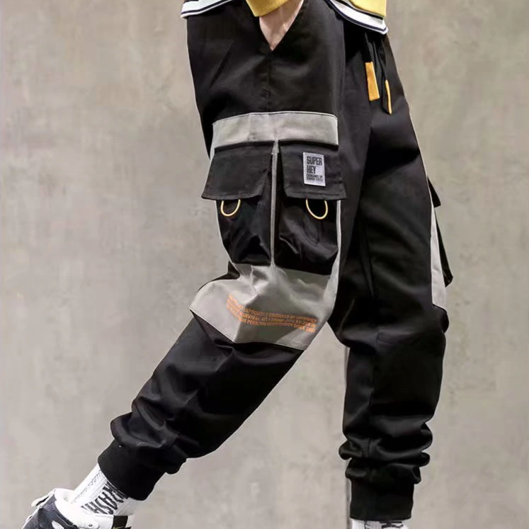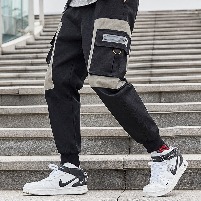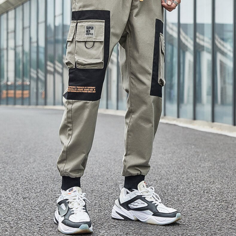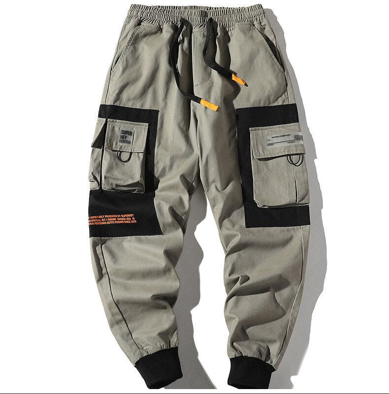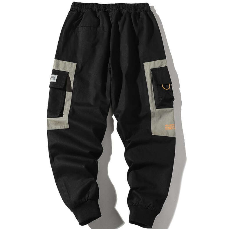 "SUPERHEY" Pantalon Cargo Noir Gris Streetwear - URB1™