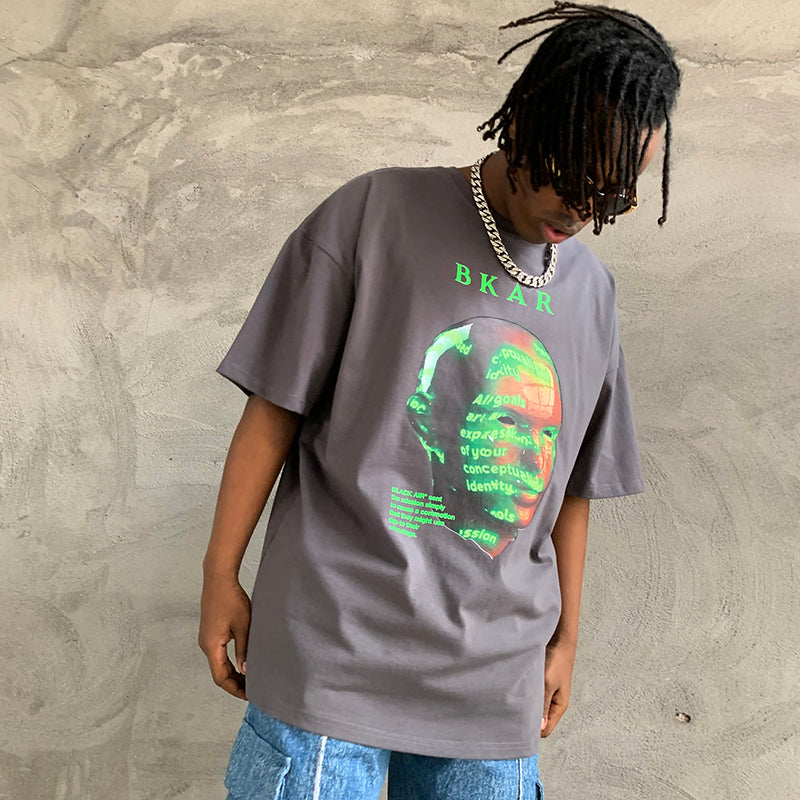 "BKAR" T-shirt Gris imprimé Streetwear - URB1™