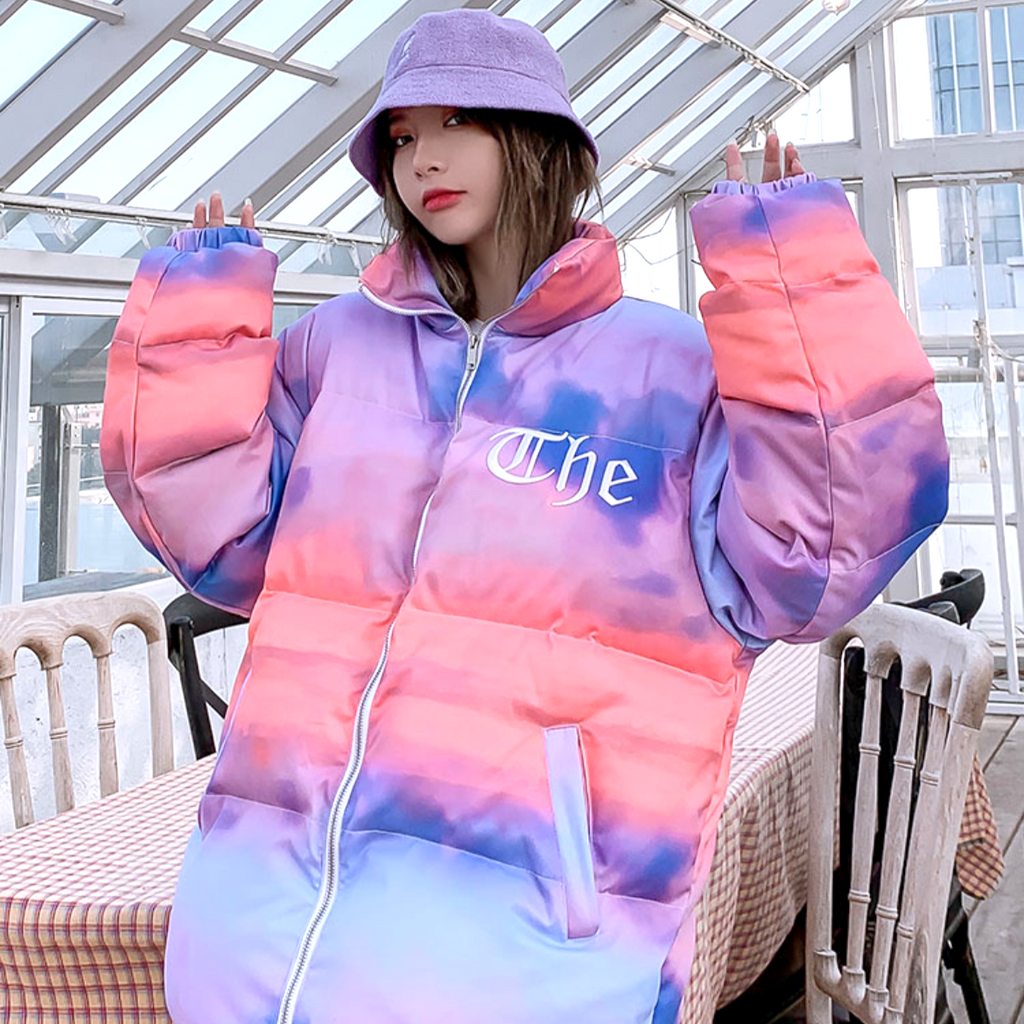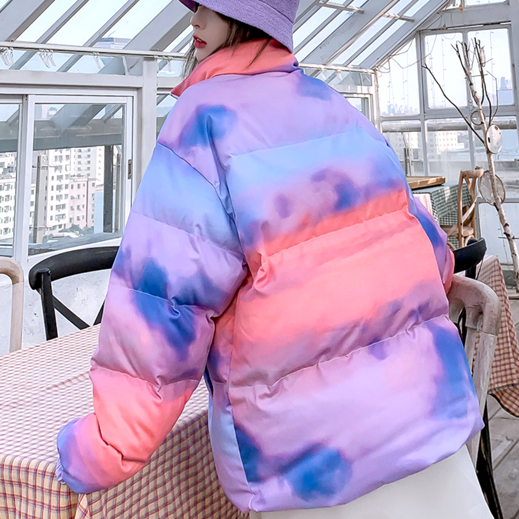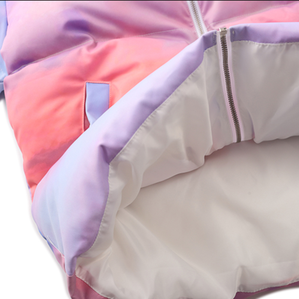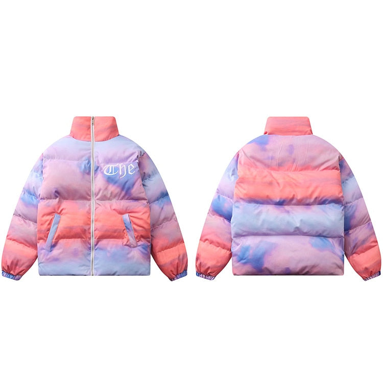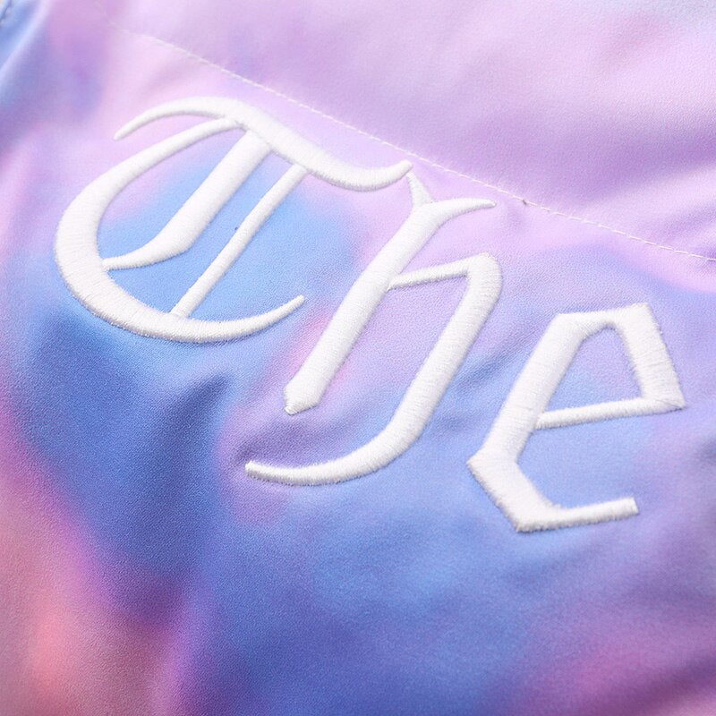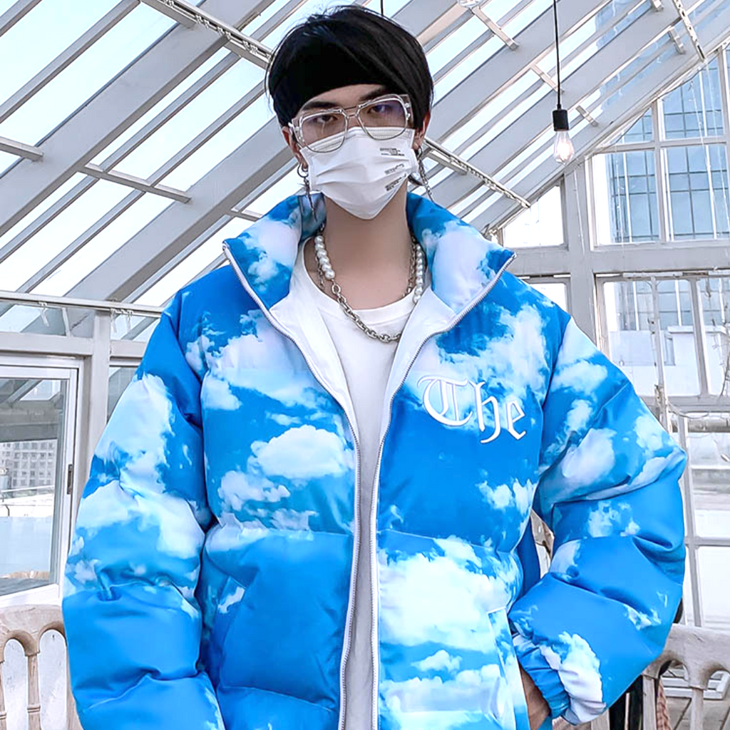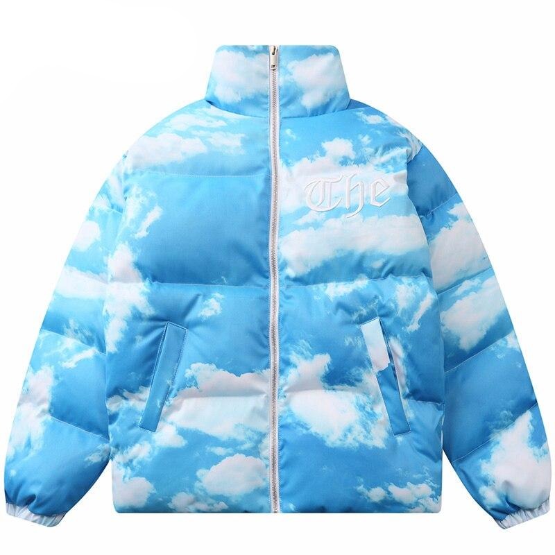 -Parka Doudoune Matelassée Bleu Blanc Nuages Brodé Streetwear