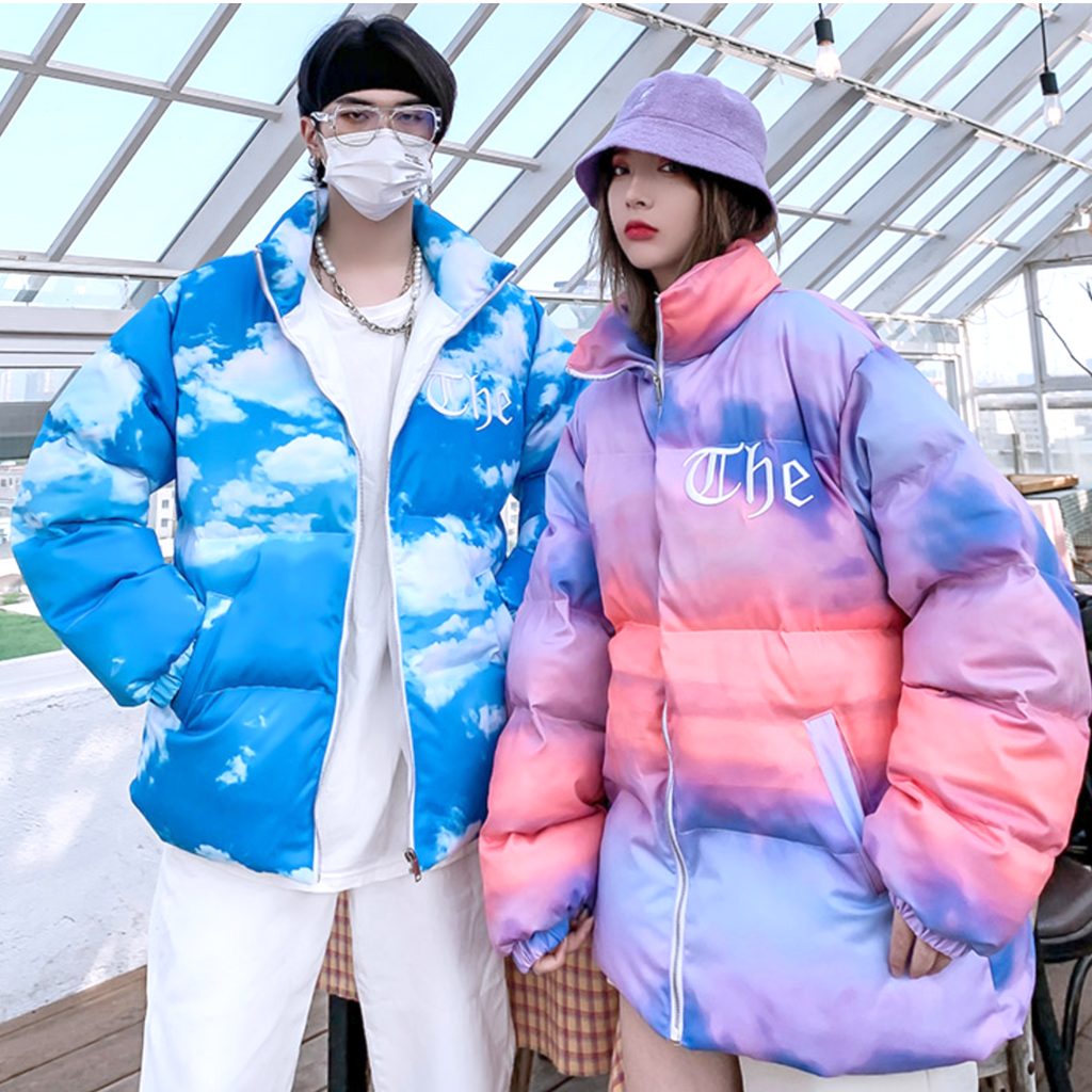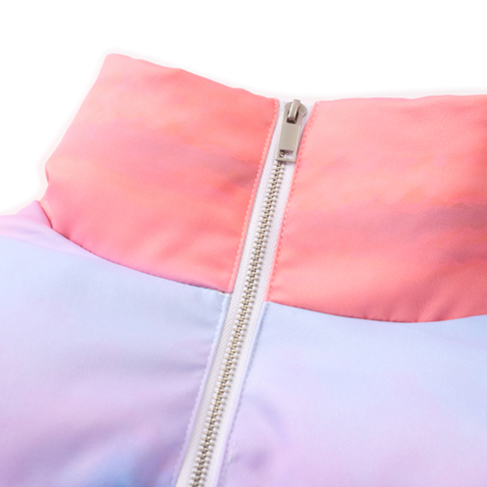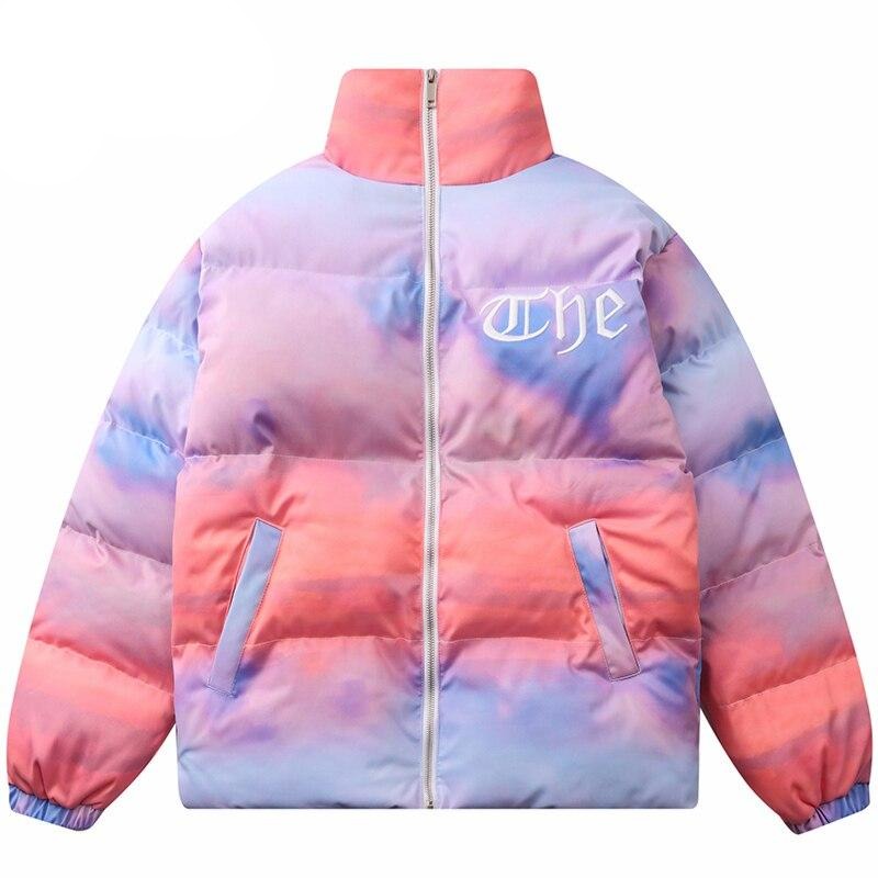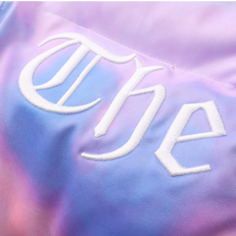 -Parka Doudoune Matelassée Rose Violet Brodé Streetwear