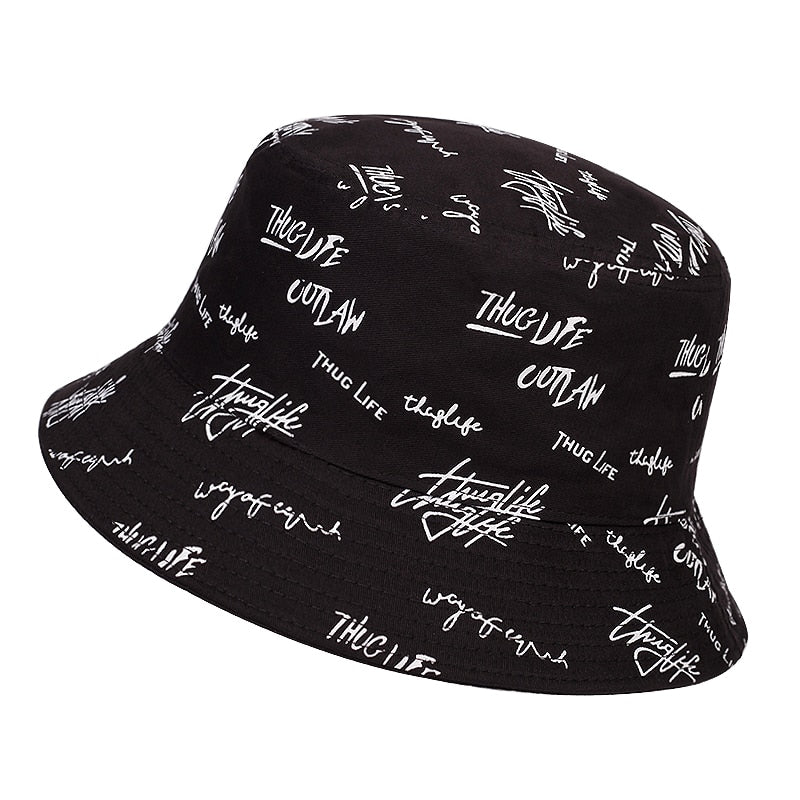 "THUG LIFE" Chapeau Bob Brodé Réversible Noir - URB1™