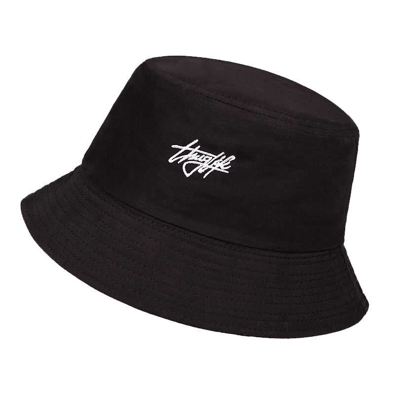 -Chapeau Bob Brodé Réversible Noir ou Blanc Streetwear