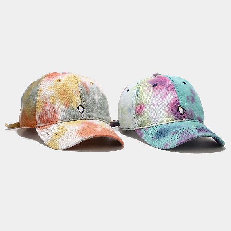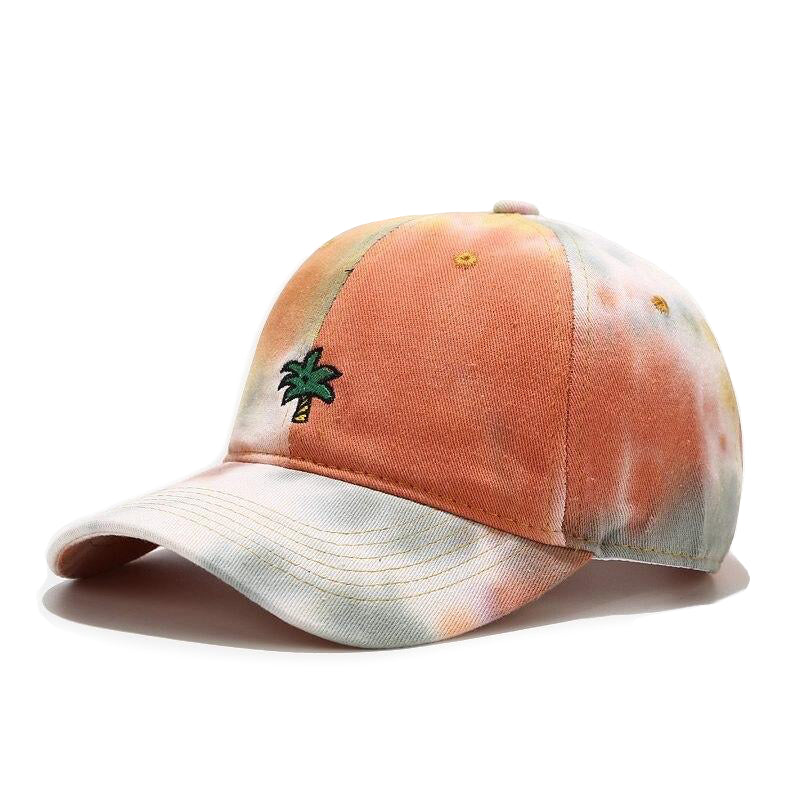 -Casquette Baseball Tie and dye Orange Jaune Blanc Turquoise Streetwear Brodée Fleurs