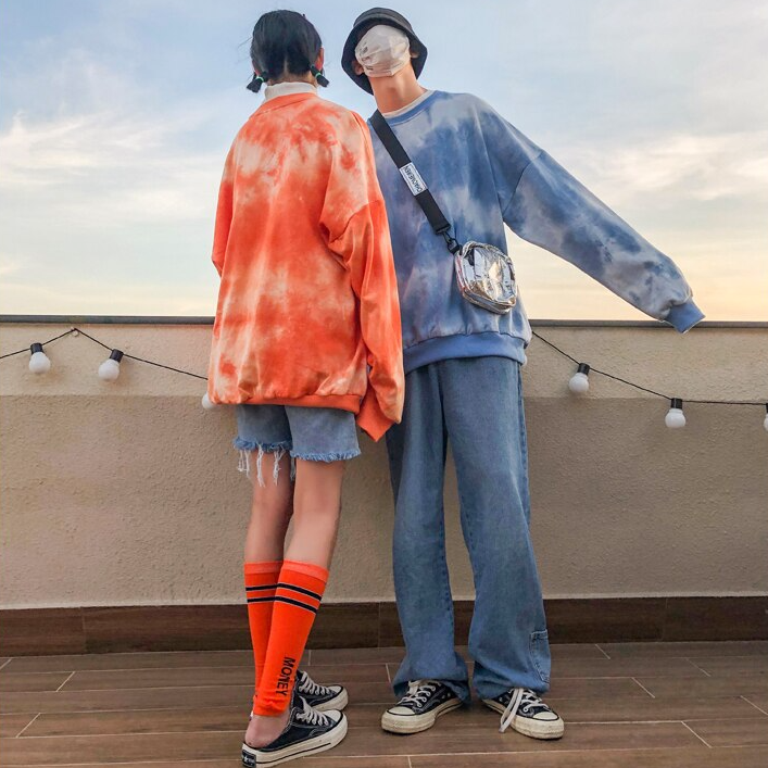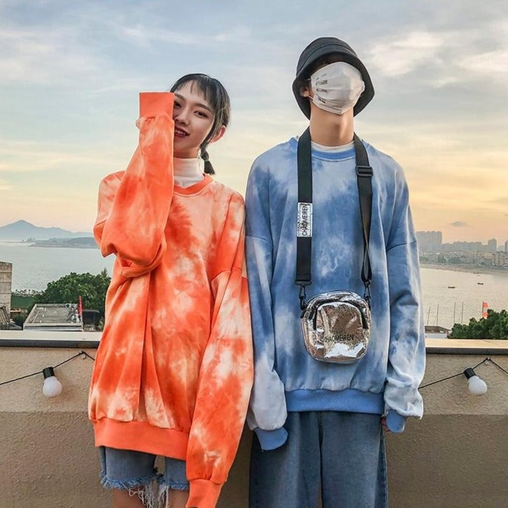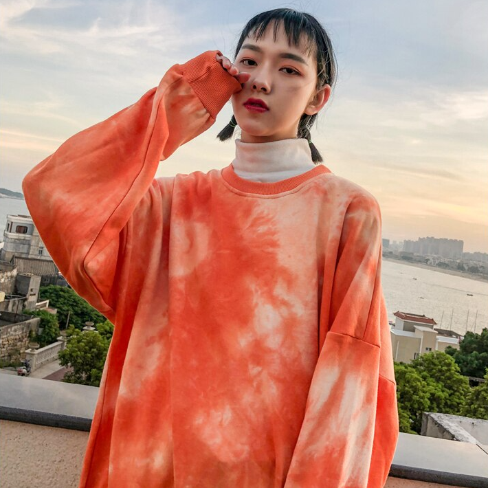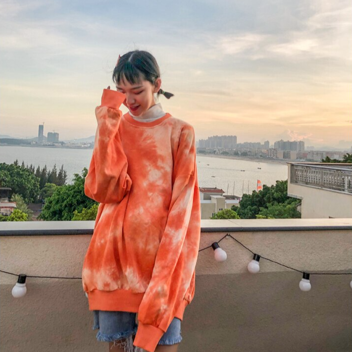 -Sweatshirt Hoodie Crewneck Tie and Dye Orange