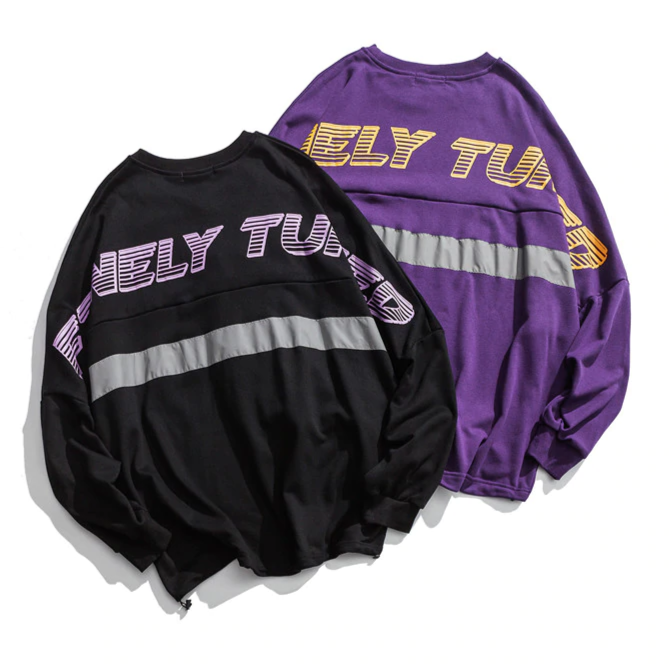 -Sweatshirt Hoodie Crewneck Imprimé Oversize Réfléchissant Streetwear