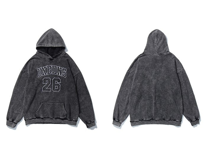 -Sweat-shirt Gris délavé Hoodie à capuche Pull oversize Streetwear