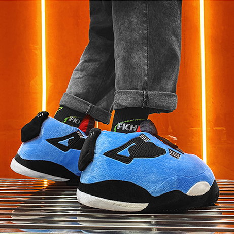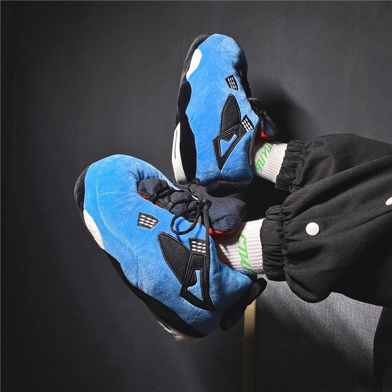-Chaussons Sneakers Pantoufles Basket Streetwear Bleu