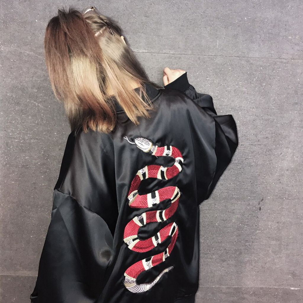"SNAKE" Veste Bombers brodé noir - URB1™