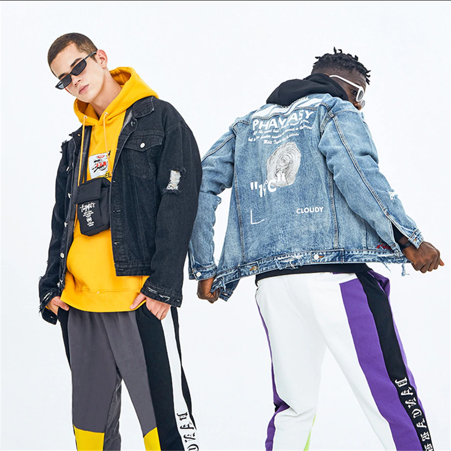 "PHANTASY" Veste en jean denim Noir Streetwear - URB1™