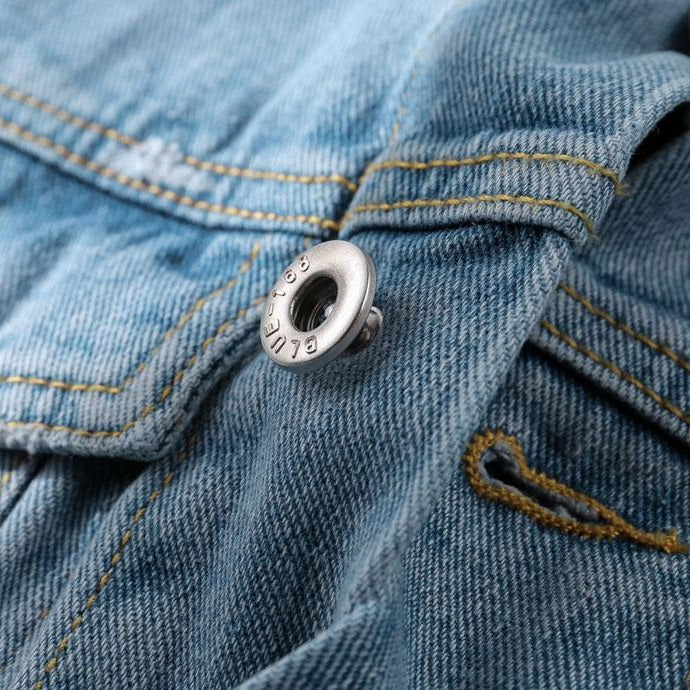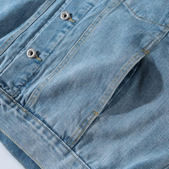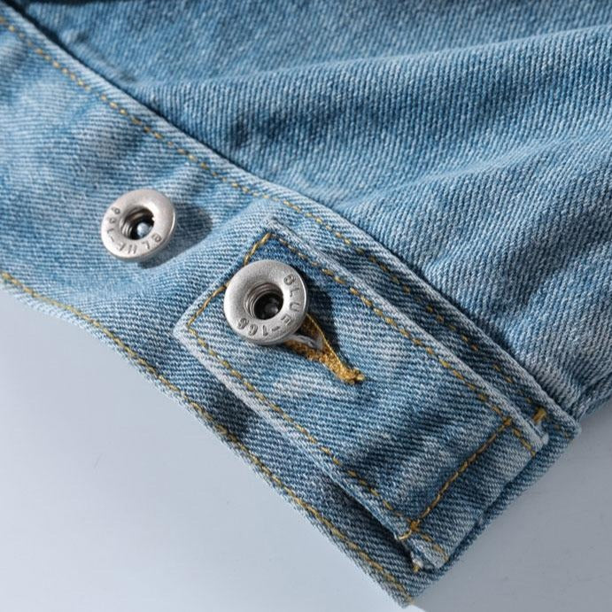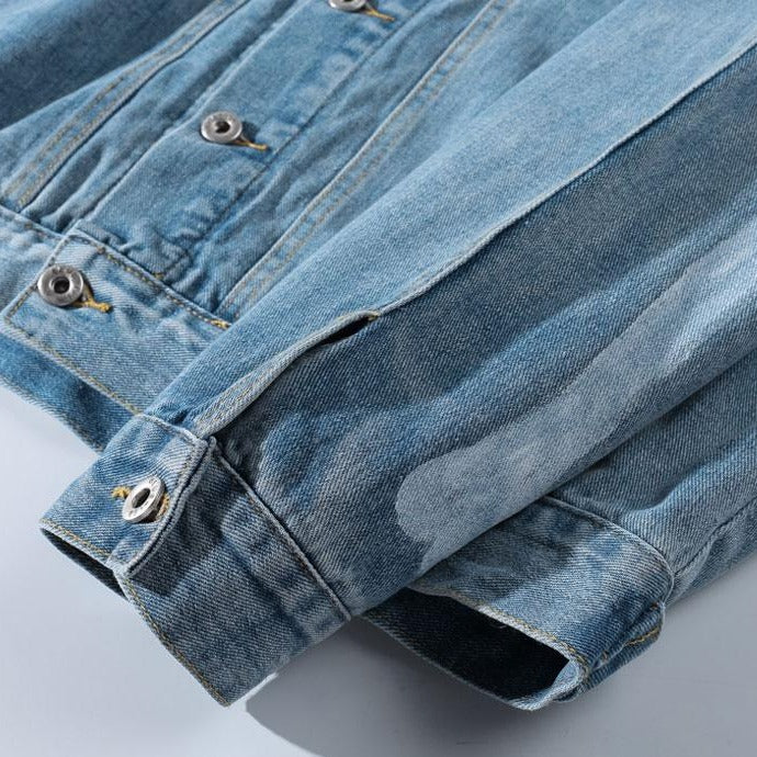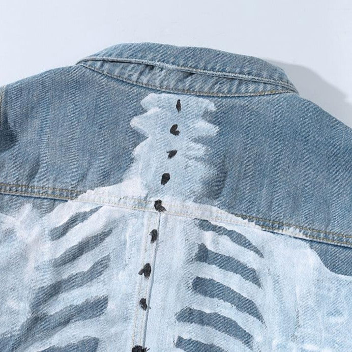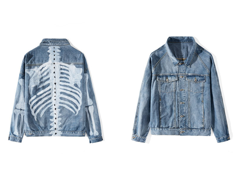 - Veste en jean Denim Streetwear Bleu imprimé squelette