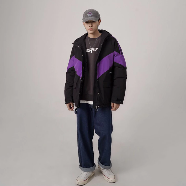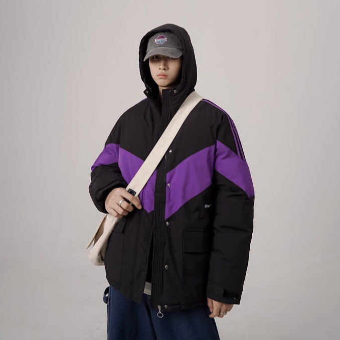 Doudoune Veste Matelassée Parka Noir Violet Streetwear