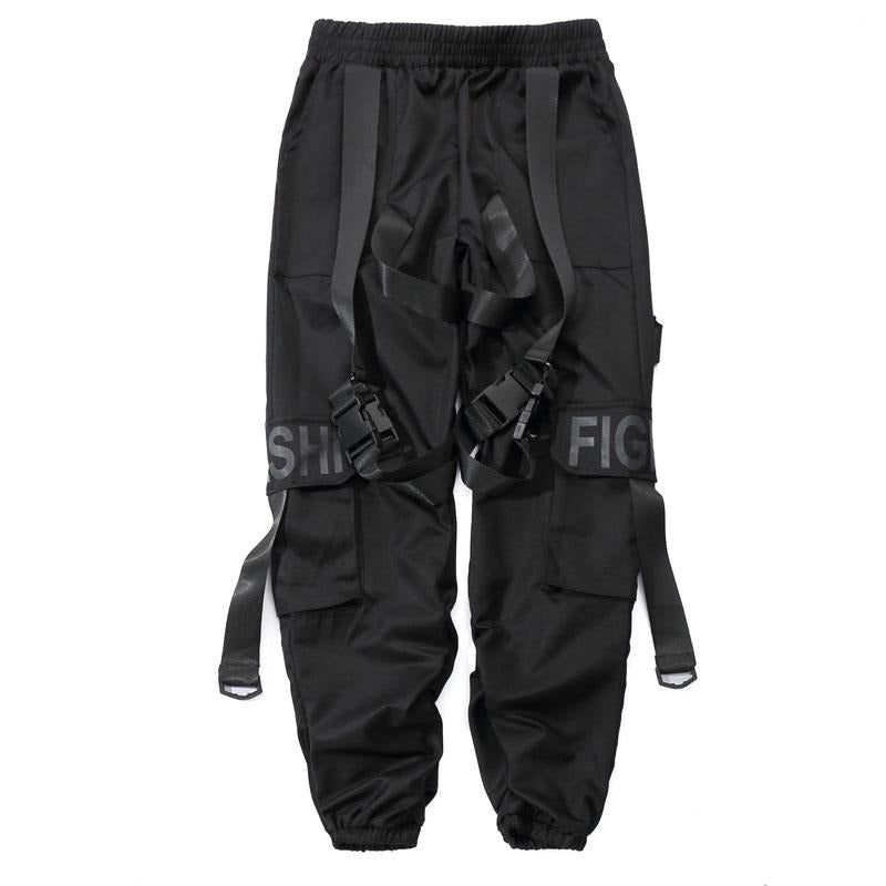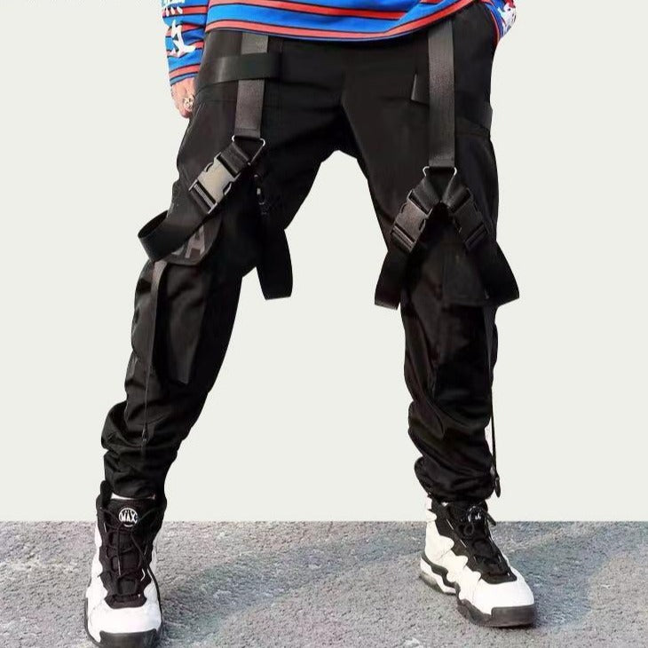 "YESHI" Pantalon Cargo Noir à poches Streetwear - URB1™